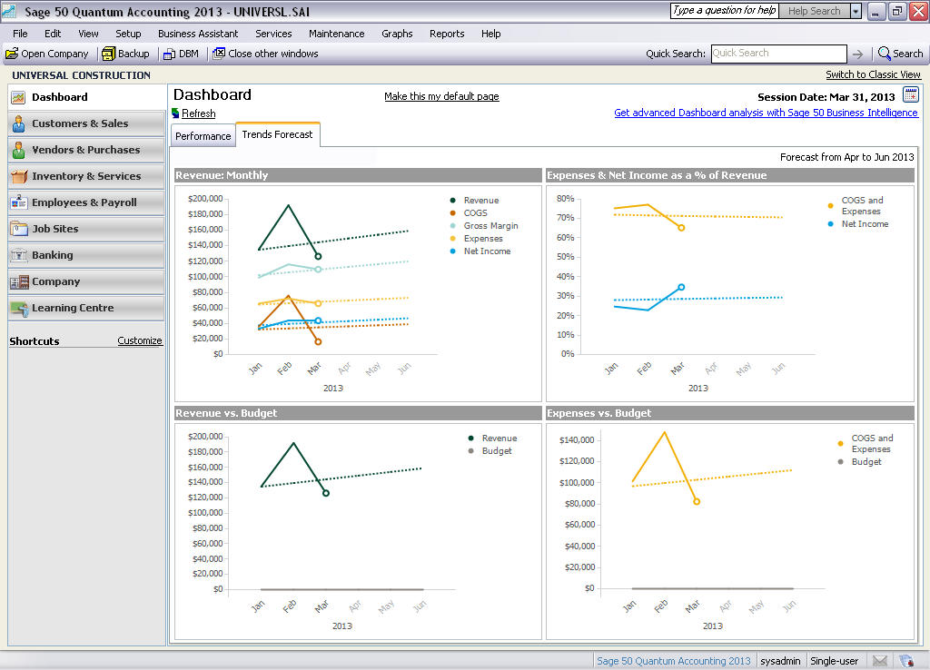 Sage 50 Intelligence Reporting est disponible pour les clients de Sage 50 Comptabilité Supérieur et Sage 50 Comptabilité Quantum.